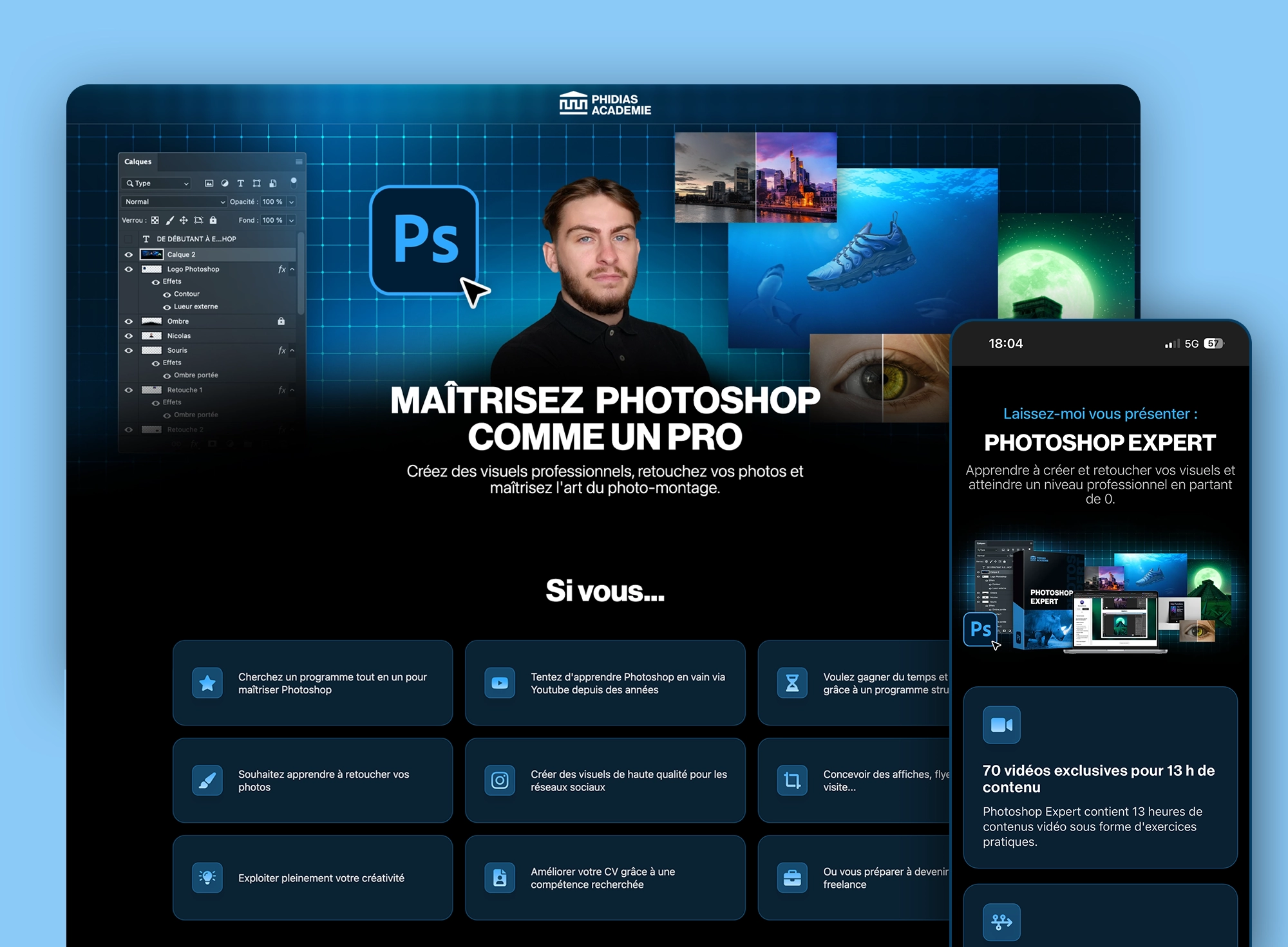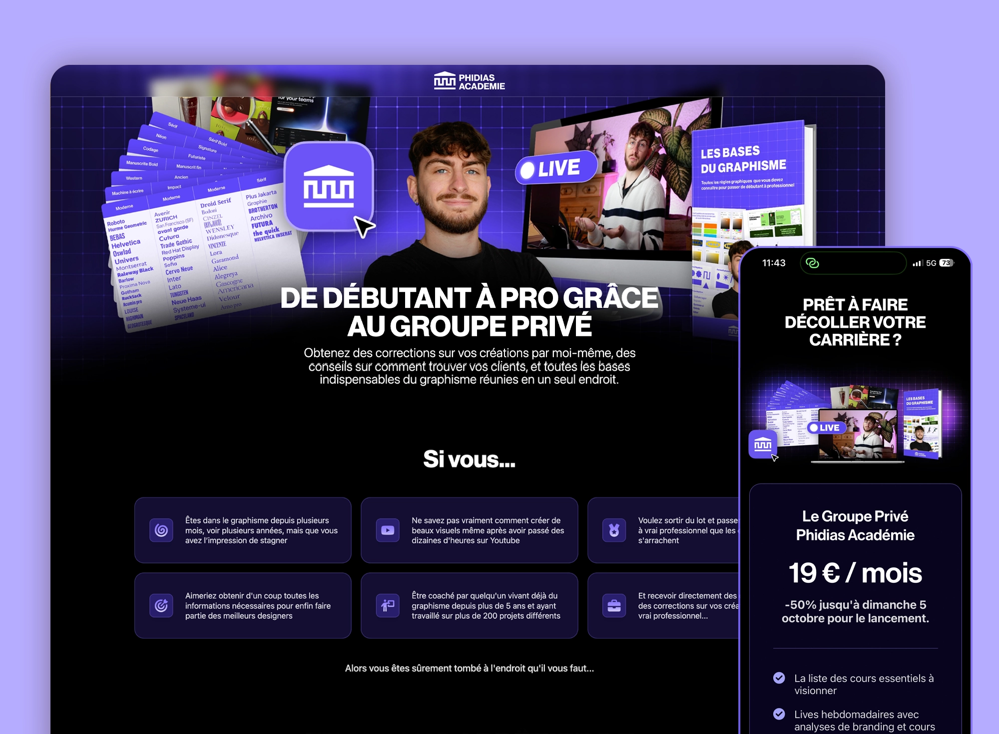 Création de l'identité graphique de ma chaîne Youtube et de mon site internet de formation sur le graphisme.